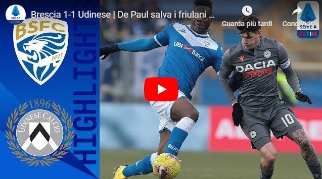 [VIDEO] Brescia-Udinese 1-1 – Gol e Highlights – Giornata 23 – Serie A TIM 2019/20: