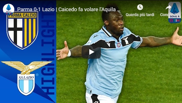 PARMA-LAZIO 0-1 – GOL E HIGHLIGHTS – GIORNATA 23 – SERIE A TIM 2019/20: 9 febbraio 2020 – la Lazio sbanca il Tardini e si porta a un solo punto da Juventus e Inter. Parma battuto, decide un gol di Caicedo nel finale del primo tempo. Inzaghi nella storia della Lazio: 18esimo risultato utile di fila in Serie A, superato Sven Goran Eriksson.
