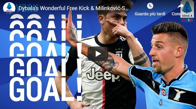 TUTTI I GOL DELLA VENTIQUATTRESIMA GIORNATA DI SERIE A: la Juventus ha vinto e rimane prima, la Lazio ha battuto l’Inter superandola di due punti al secondo posto; nel posticipo del lunedì il Milan è tornato a vincere.