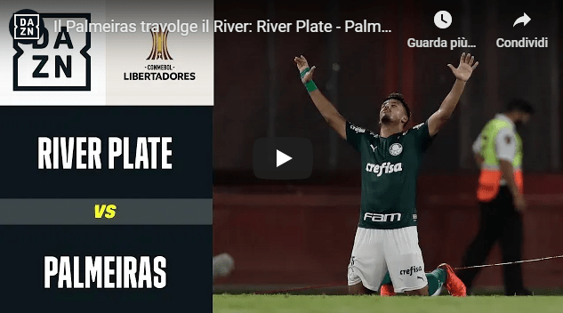 RIVER PLATE-PALMEIRAS 0-3 | GOL E HIGHLIGHTS | COPA LIBERTADORES: 6 gennaio 2021 – Il Palmeiras vince 3-0 sul campo del River e mette una serissima ipoteca sulla finale di Libertadores. In rete anche l’ex Milan Luiz Adriano.
