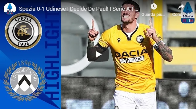 [VIDEO] Spezia-Udinese 0-1 | Gol e Highlights | Giornata 20 | Serie A TIM 2020/21: